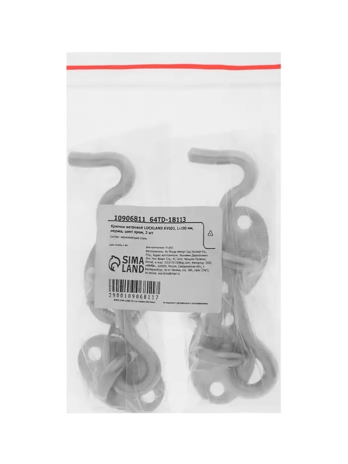 Крючок ветровой LOCKLAND KV001, L=100 мм, нержа, цвет хром, 2 шт