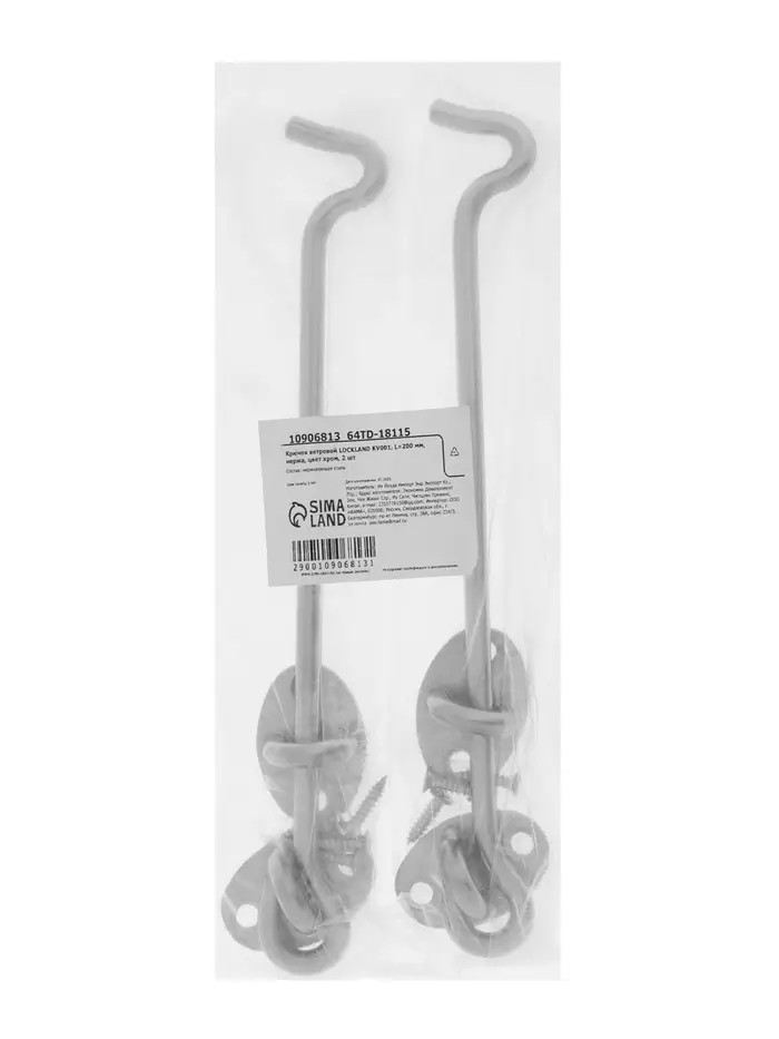 Крючок ветровой LOCKLAND KV001, L=200 мм, нержа, цвет хром, 2 шт