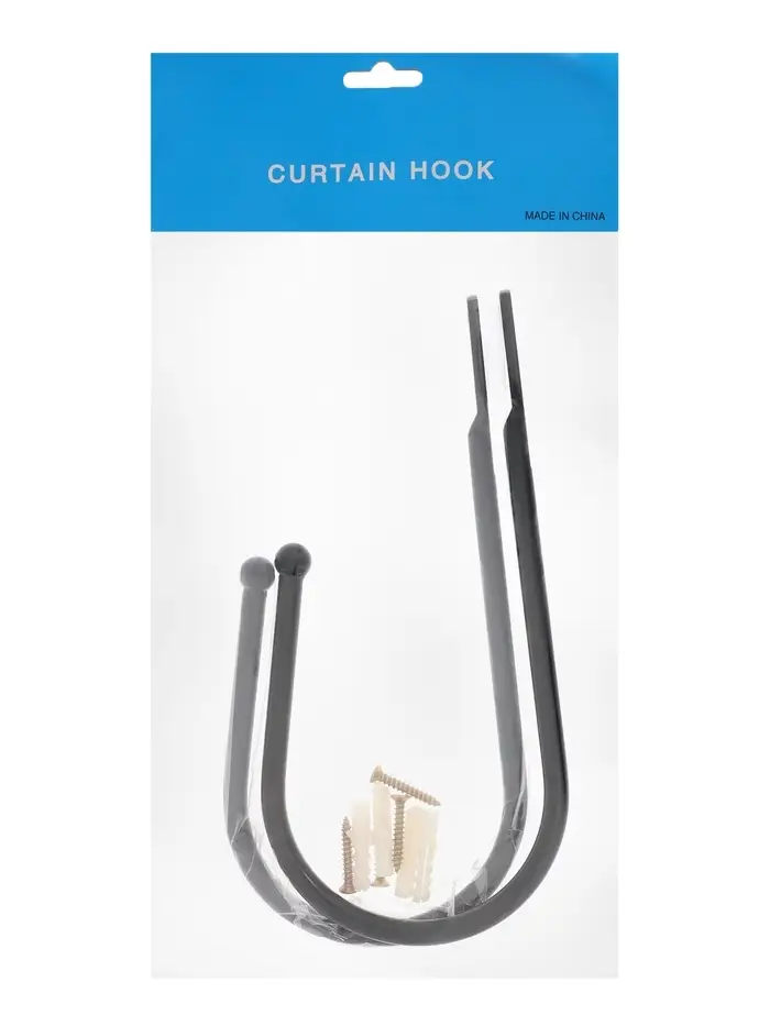 Крючок для штор ТУНДРА KS011, однорожковый, цвет черный, 2 шт