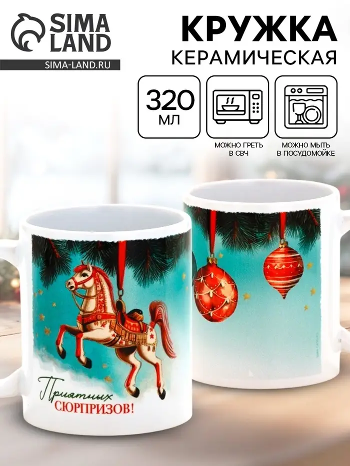 Кружка керамическая «Приятных сюрпризов!», ёлочная игрушка, 320 мл