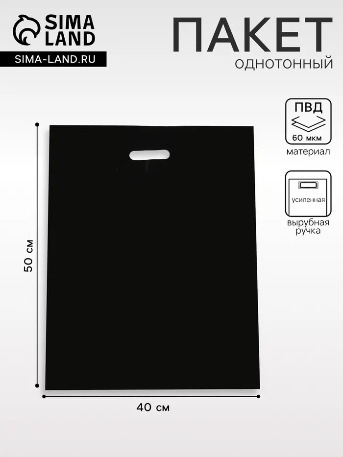 Пакет полиэтиленовый с вырубной ручкой, чёрный, 40×50 см, 60 мкм