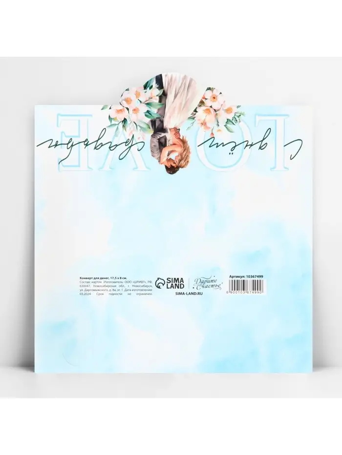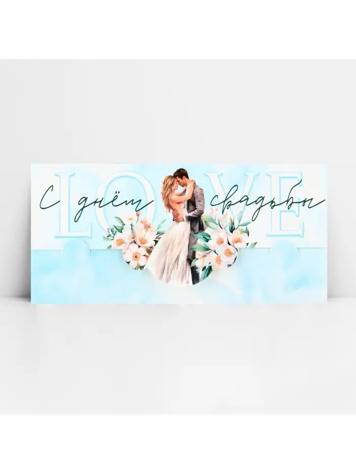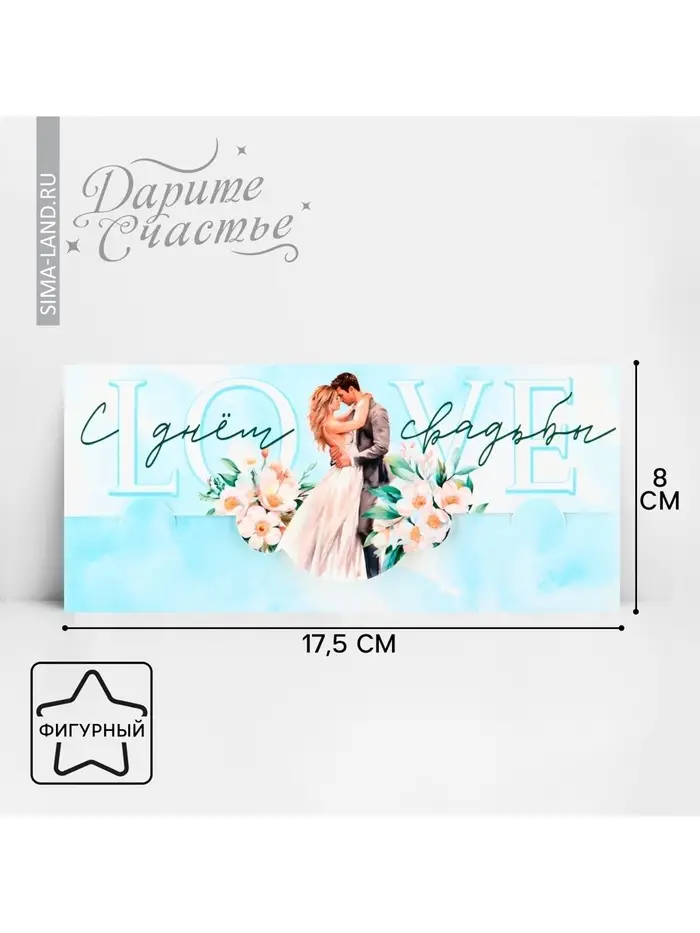 Конверт для денег фигурный «С днём свадьбы», голубой, 17.5 х 8 см