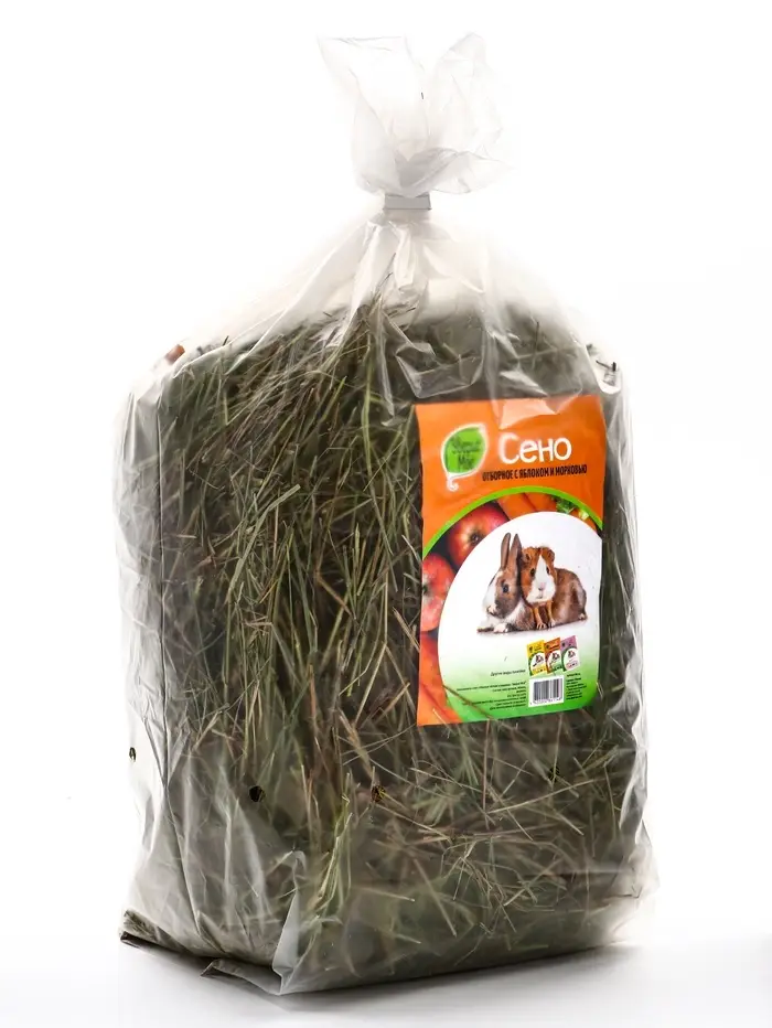 Сено с фруктами и овощами — еда, игрушка и подстилка в одном! Луговое сено с яблоком и морковью «Зверьё Моё» — это отборная зелёная трава, обогащённая кусочками сушеных яблока и моркови. Подходит для шиншилл, морских свинок, кроликов и других травоядных как сбалансированная добавка к основному рациону и как наполнитель для клетки.