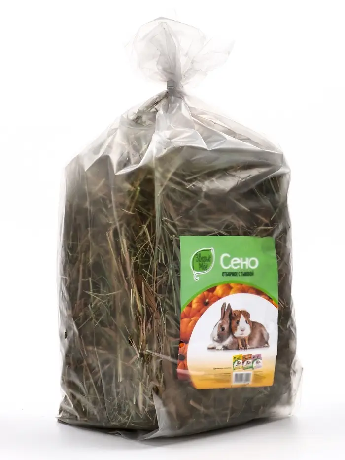 Сено с тыквой — вкусно, полезно и увлекательно! Луговое сено с тыквой «Зверьё Моё» — это отборная зелёная трава, обогащённая кусочками сушеной тыквы. Подходит для шиншилл, морских свинок, кроликов и других травоядных как ежедневный корм, подстилка и источник естественного поведения: жевания, копания и поиска лакомств.