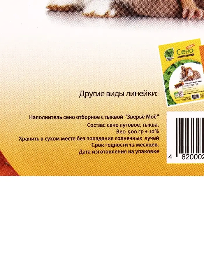 Сено луговое «Зверьё Моё», отборное, ароматное, зеленое, без пыли, тыква, 500 г