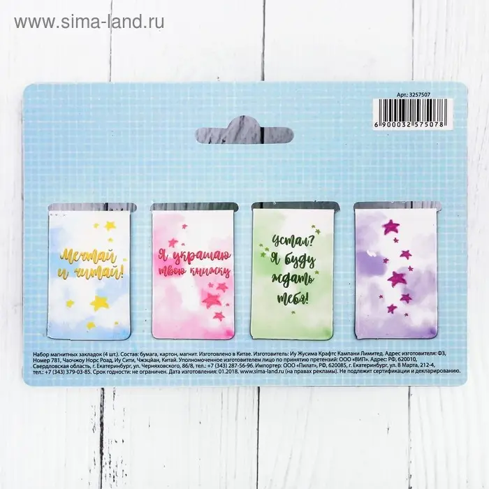 Закладки магнитные для книг, 4 шт «Читам вместе»