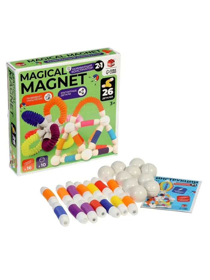 Конструктор магнитный "Развивающие трубы", 26 деталей