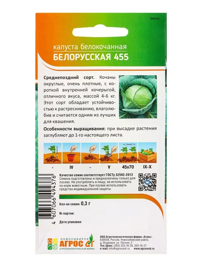 Семена Капуста "Белорусская 455" 0,3 г