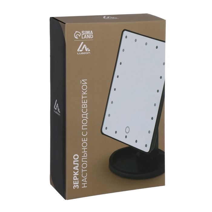 Зеркало Luazon KZ-06, подсветка, 26.5×16×12 см, 4хАА, 22 диода, сенсорная кнопка, черное