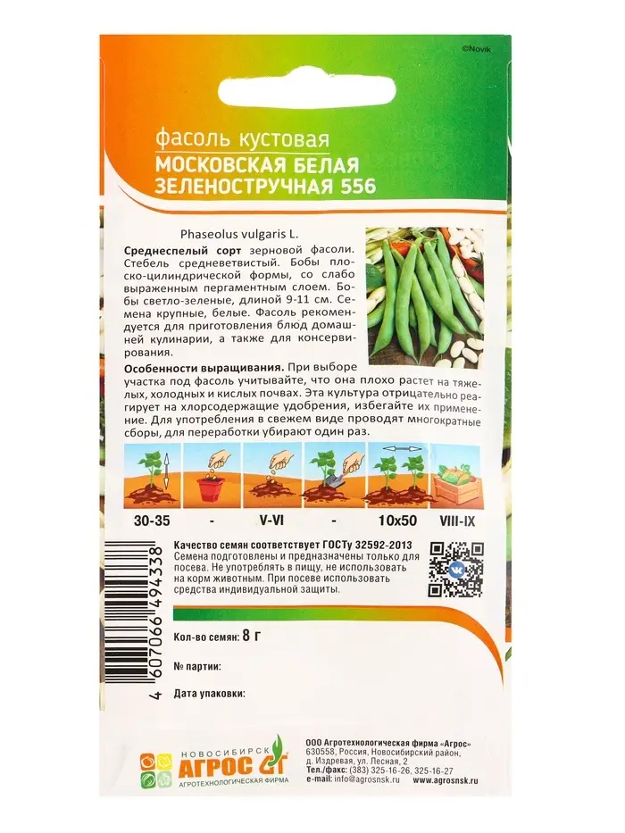Семена Фасоль "Московская белая зеленостручковая 556" 8 г