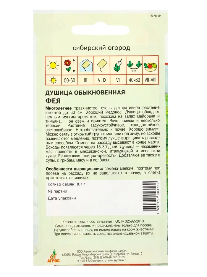 Семена Душица обыкновенная "Фея" 0,1 г