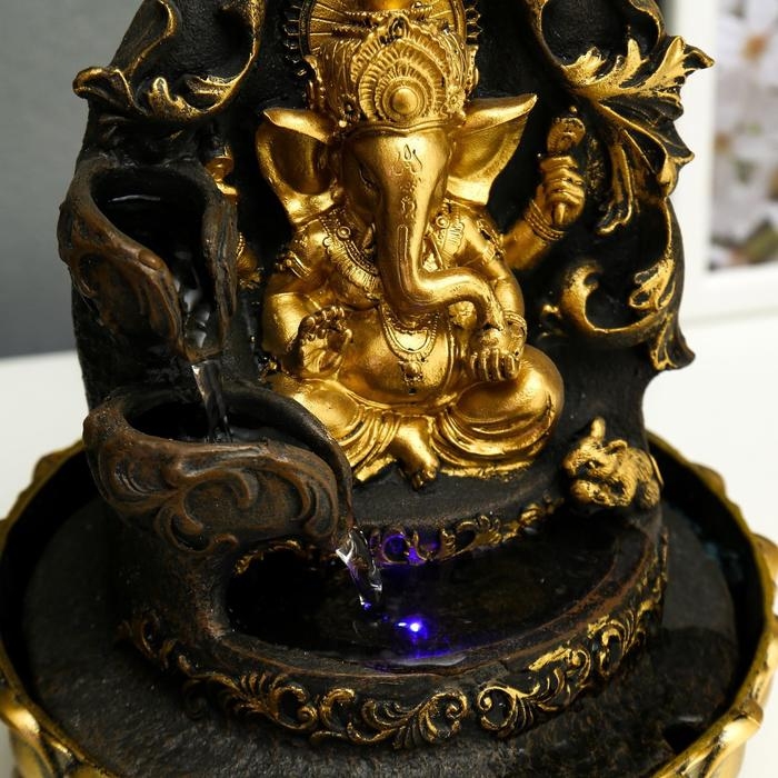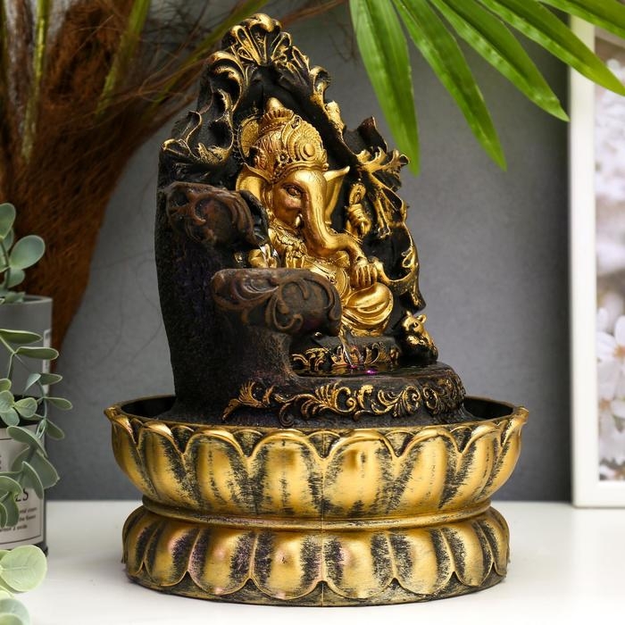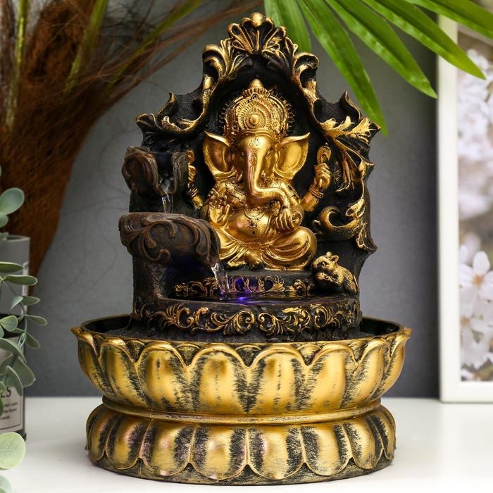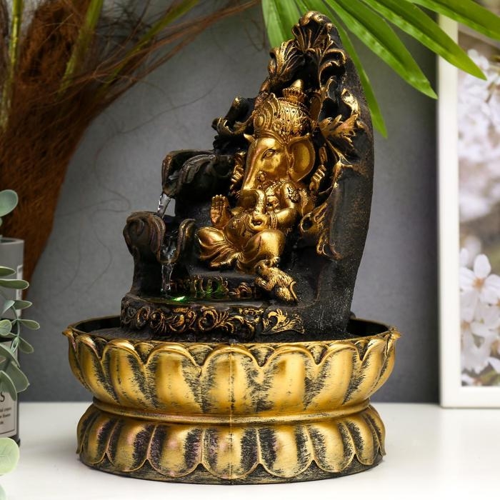Фонтан настольный от сети, подсветка "Золотой Ганеша на ажурном троне" 28х20,5х20,5 см