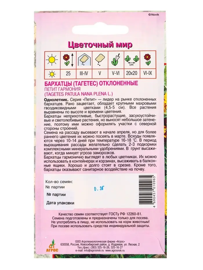 Семена Бархатцы Петит Гармония 0,3 г