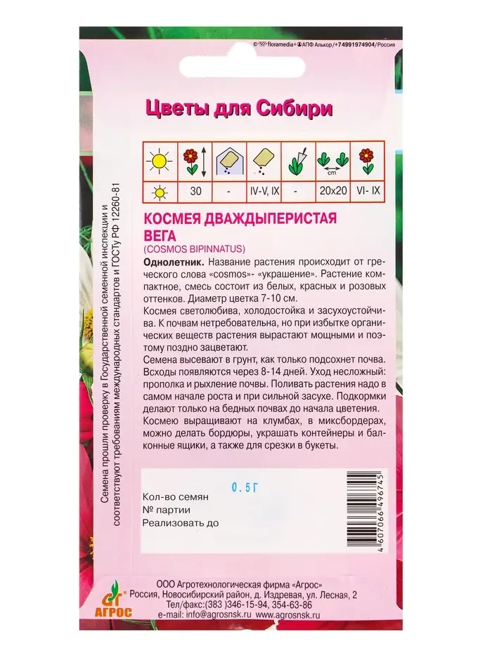Семена Космея "Вега" 0,5 г