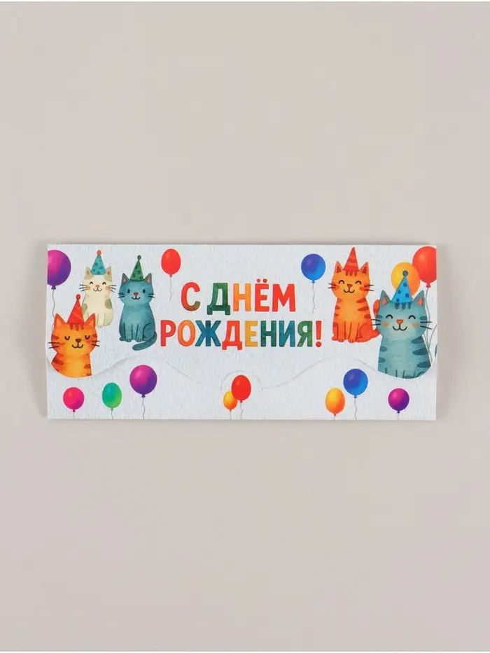 Конверт для денег формовой «С Днём рождения», коты, 17,5 х 8 см