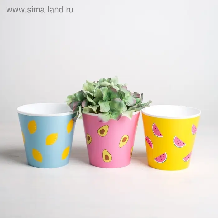 Набор кашпо для цветов 3 в 1 «Фрукты», 0,8 л, 11 х 12 см