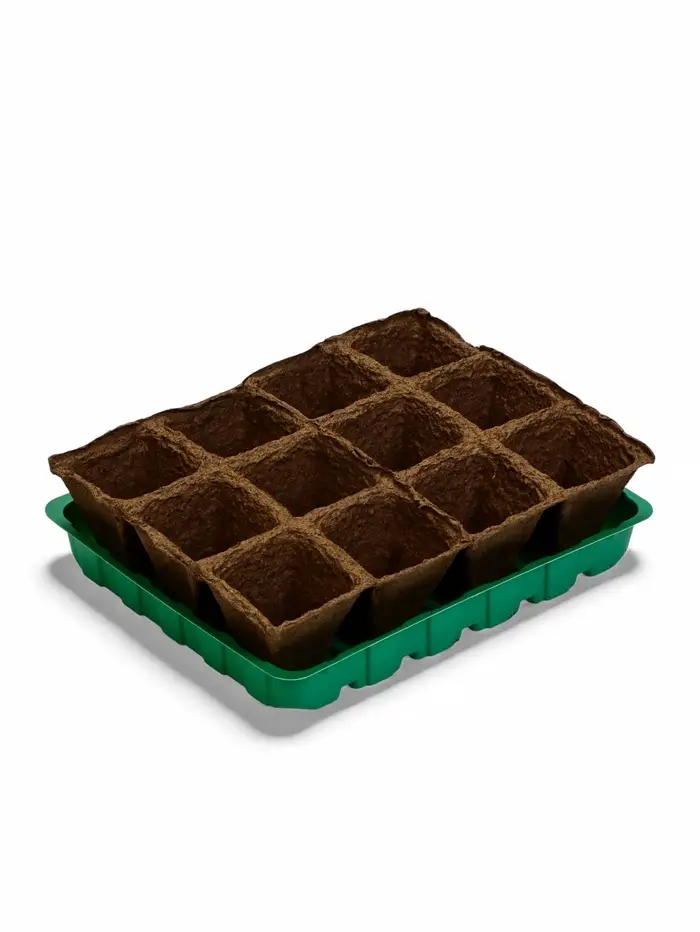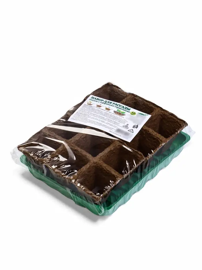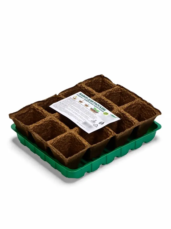 Набор для рассады: торфяная кассета, 12 ячеек по 50 мл, поддон _ × _ см, зелёный
