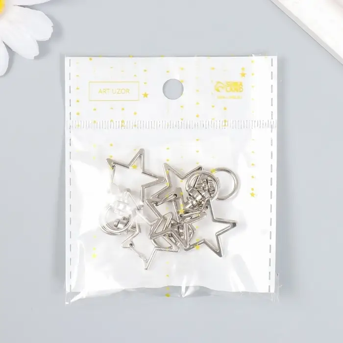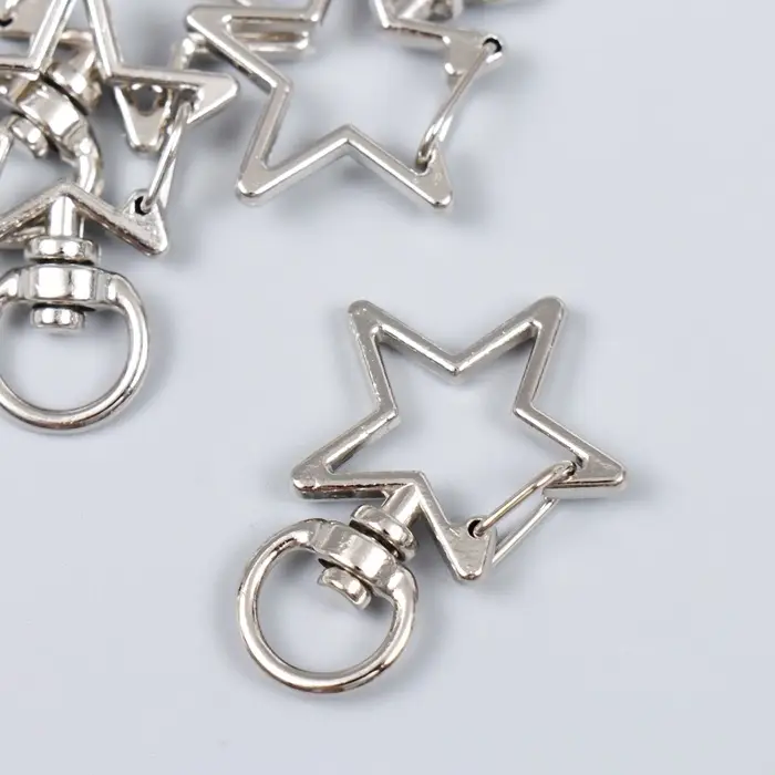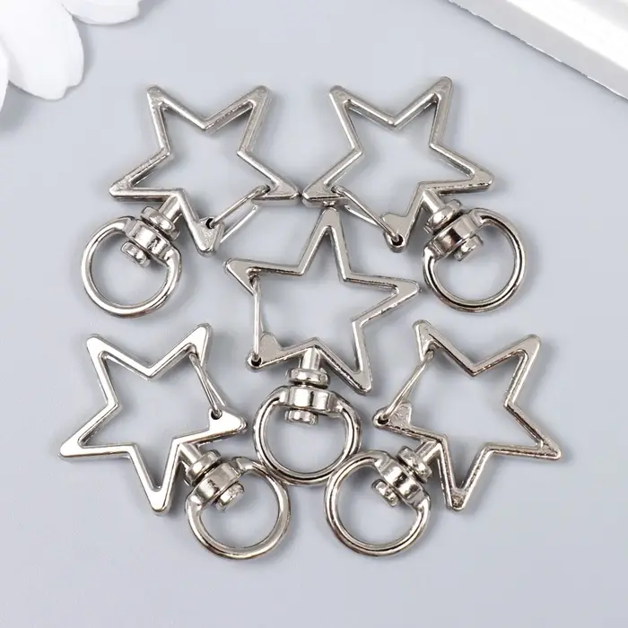 Карабин металл с кольцом "Звезда" серебро набор 5 шт 3,4х2,3 см