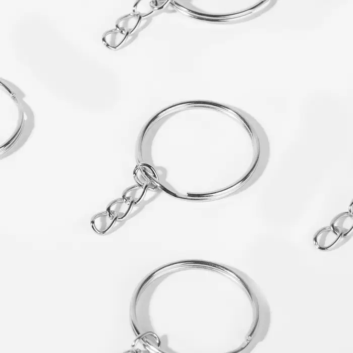 Основа для брелока d25мм с цепочкой набор 100 шт металл серебряный