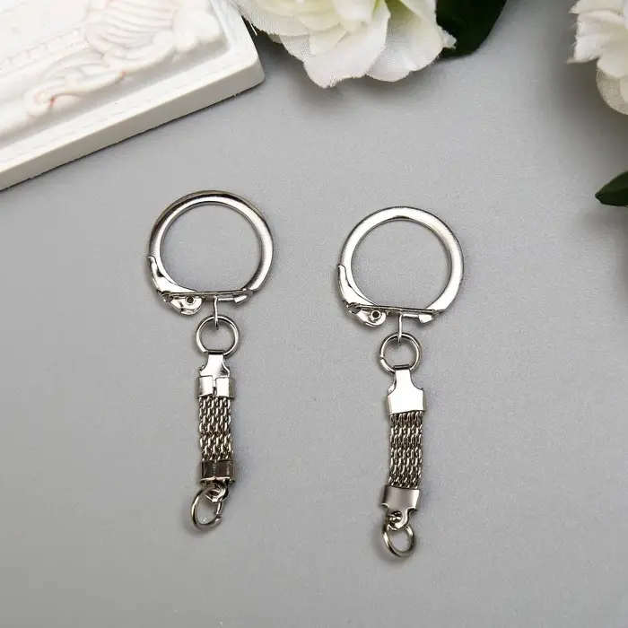 Основа для брелока карабин металл с плоской цепочкой серебро набор 15 шт 5,8х2,2 см