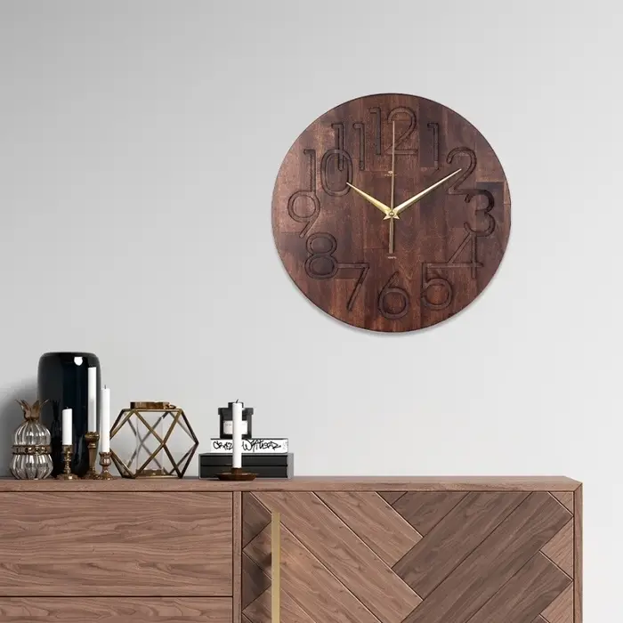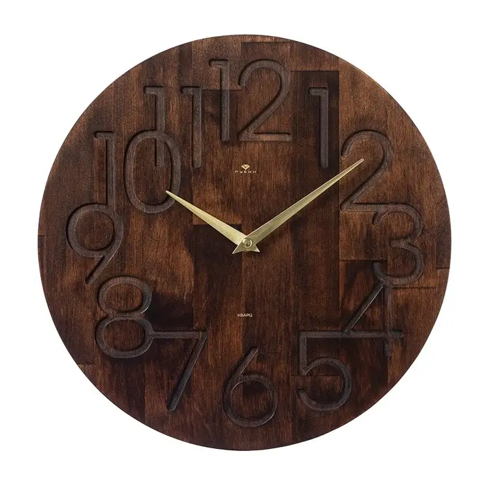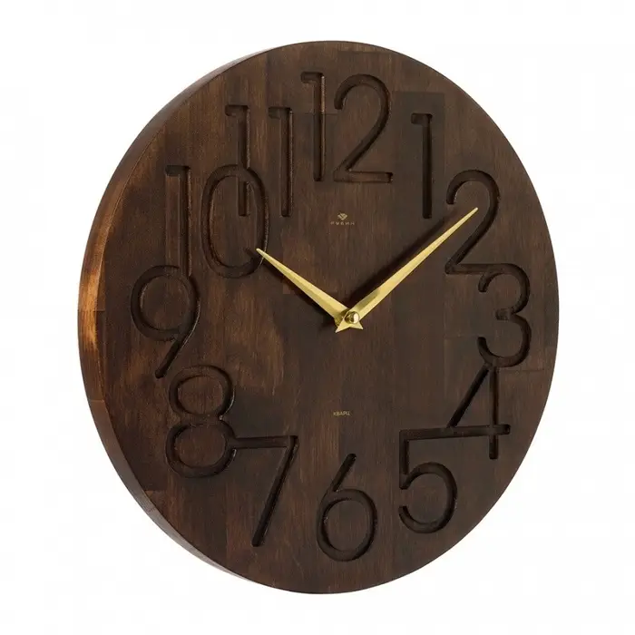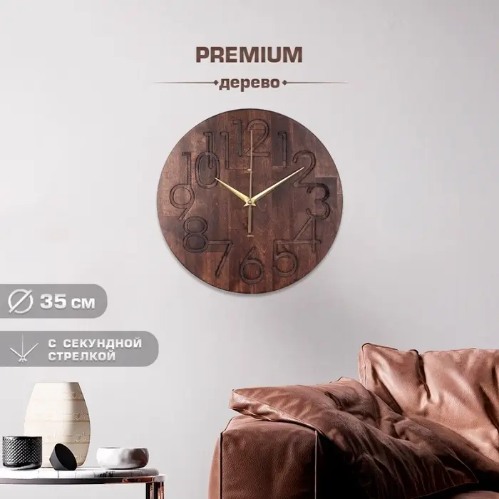Часы настенные, интерьерные, бесшумные, d-35 см, дерево, открытые, темный циферблат