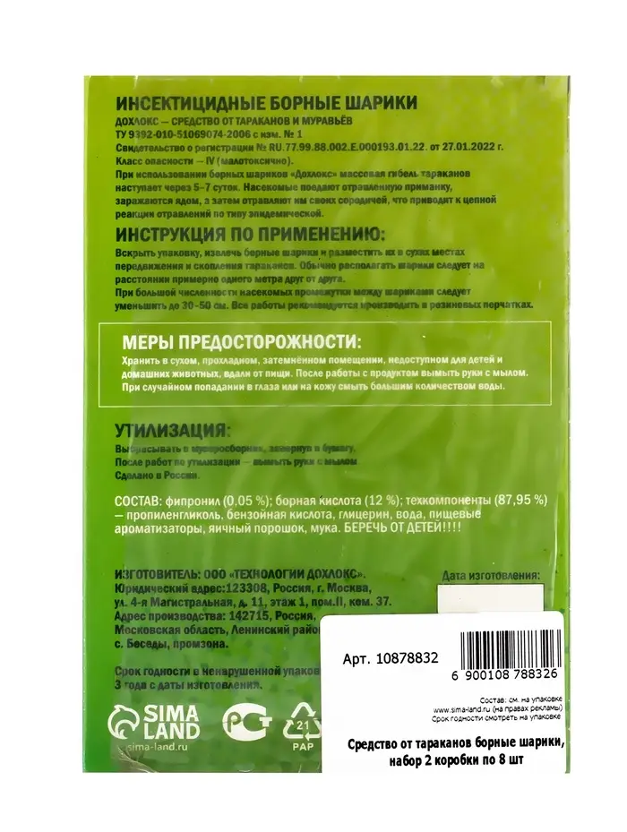 Средство от тараканов борные шарики, набор 2 коробки по 8 шт