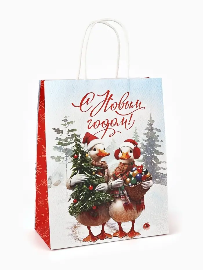 Набор пакетов крафтовых «С Новым счастьем!», 10 шт, 21 × 27 × 11 см