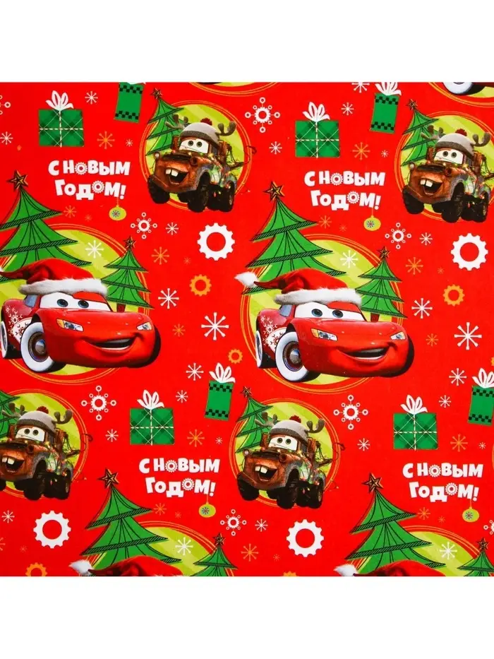 Бумага упаковочная глянцевая, 70 х 100 см «С Новым годом!», Тачки