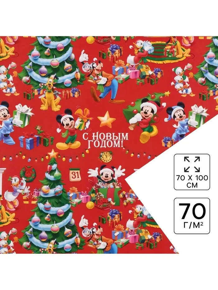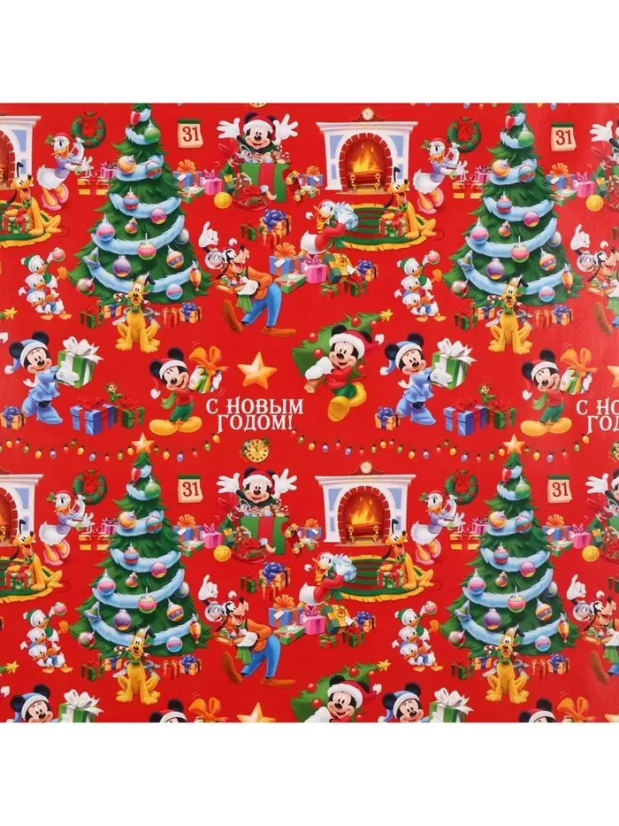 Упаковочная бумага новогодняя, 70 х 100 см, Микки Маус