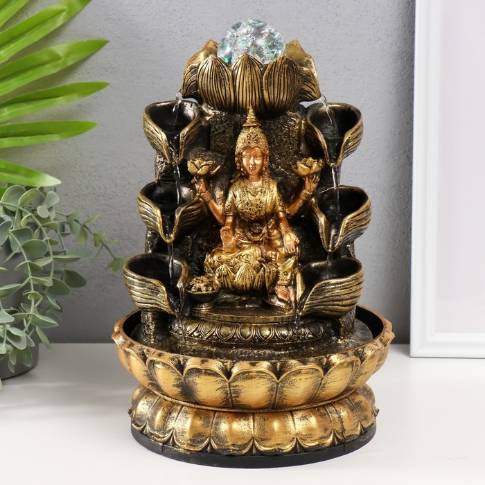 Фонтан настольный от сети, подсветка "Парвати и лотосы" 29х19,5х19,5 см