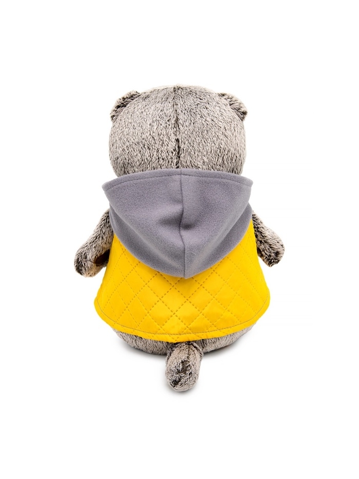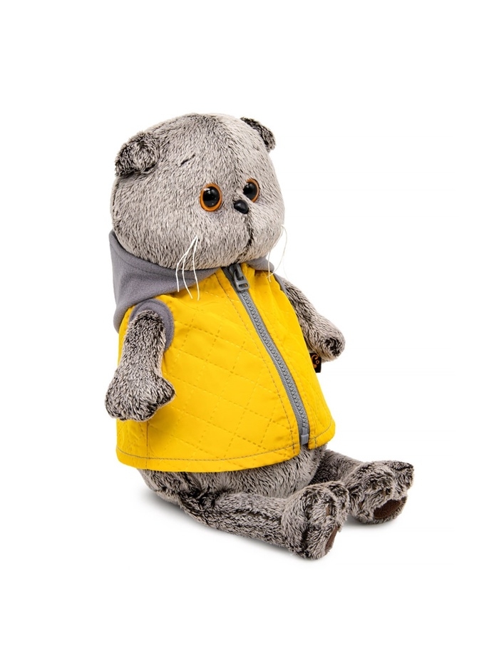 Мягкая игрушка «Басик в жёлтой жилетке с серым капюшоном» — уютный и стильный котик в современном повседневном образе. Яркая стеганая жилетка с молнией и мягкий капюшон придают игрушке характер и делают её особенно привлекательной. Басик остаётся таким же приятным на ощупь, как и классическая версия, но с модным акцентом, который понравится и детям, и взрослым коллекционерам.