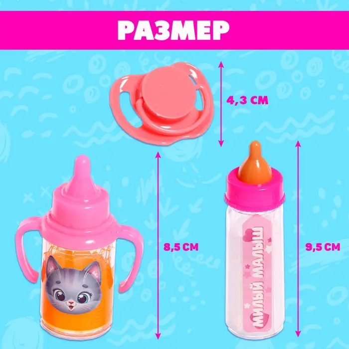 С этими аксессуарами игра в дочки-матери станет по-настоящему увлекательной. Ребёнок будет кормить куклу и ухаживать за ней. Играя, малыш разовьёт коммуникативные способности, фантазию, раскроет свой потенциал и реализует различные модели поведения.