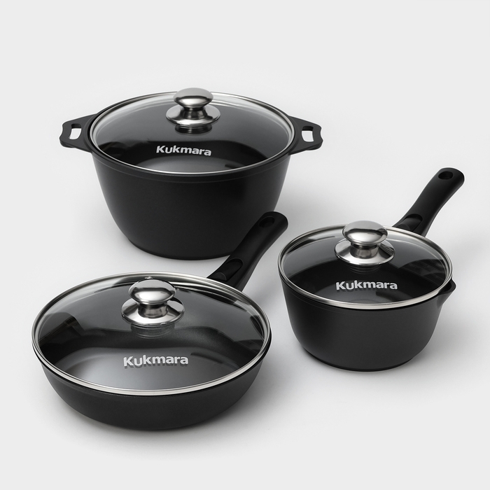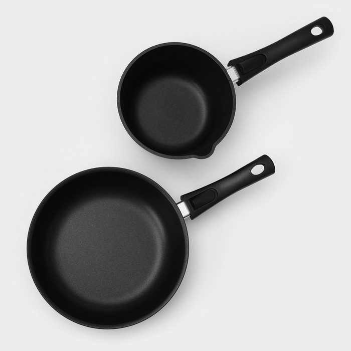 Набор кухонной посуды «Традиция №1», антипригарное покрытие, крышка, цвет чёрный