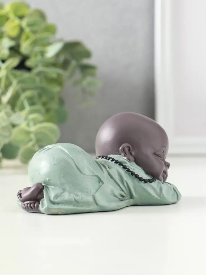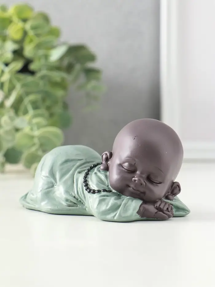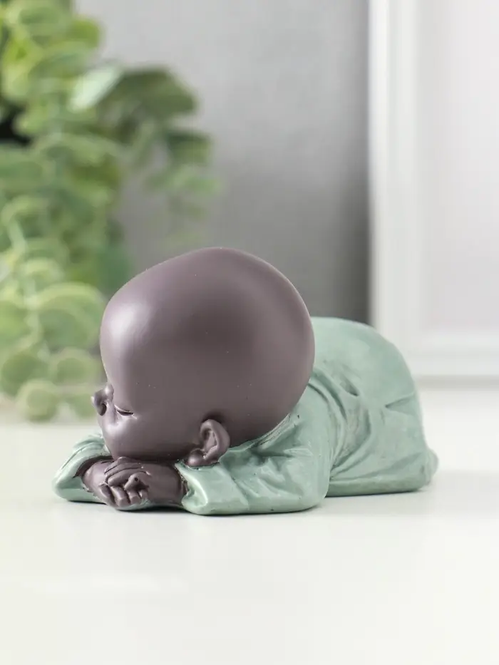 Сувенир полистоун "Маленький спящий будда" зелёно-коричневый 6,5х11х5,3 см