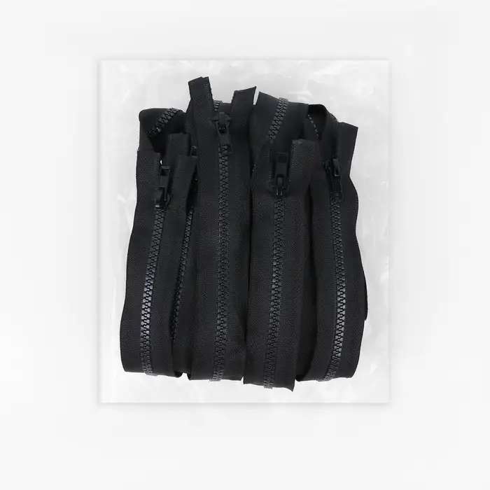 Данная молния имеет два замка на противоположных сторонах. Номер молнии обозначает ширину зубчиков в миллиметрах. Чаще всего такая застёжка используется для длинных изделий, например, пуховиков, спортивных сумок, кардиганов и т.п.