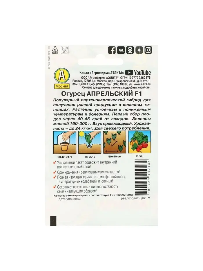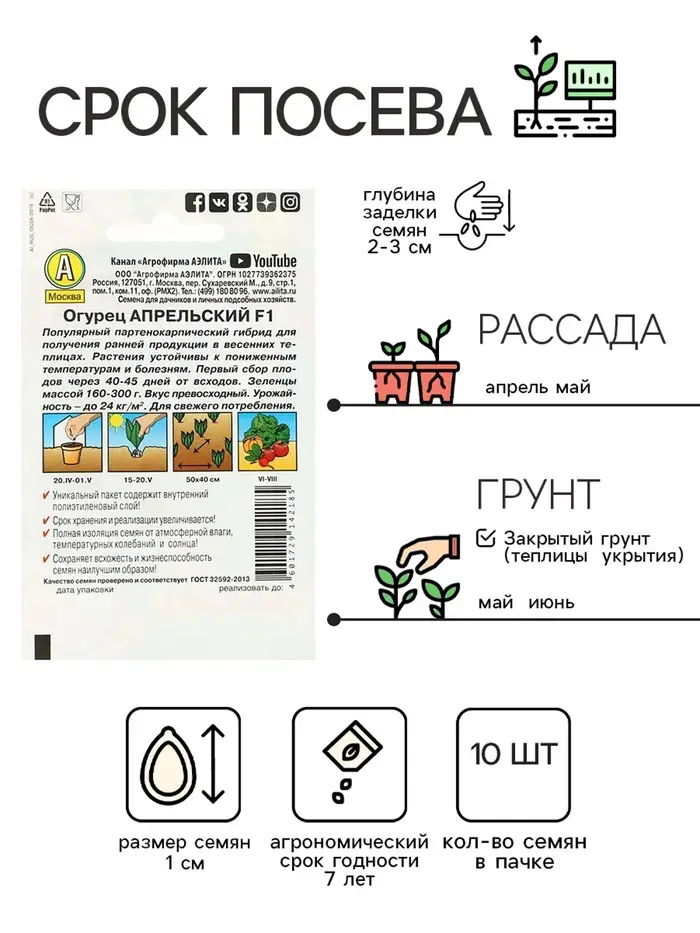 Семена огурца "Апрельский" "Лидер", F1, 10 шт.