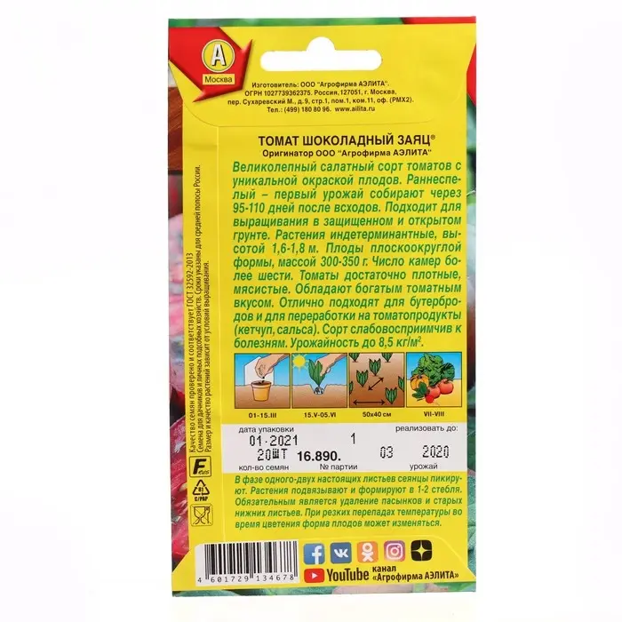 Семена Томат "Шоколадный заяц", ц/п, 20 шт