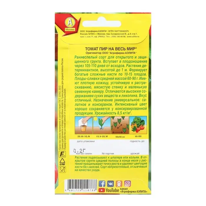 Семена Томат "Пир на весь мир", 0,2 г