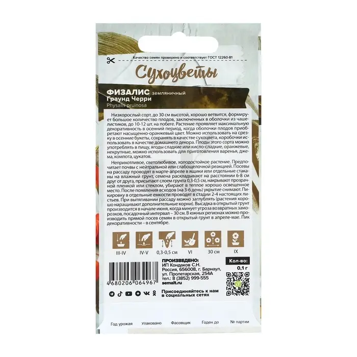 Семена Физалис "Граунд Черри", ц/п, 0,2 гр.