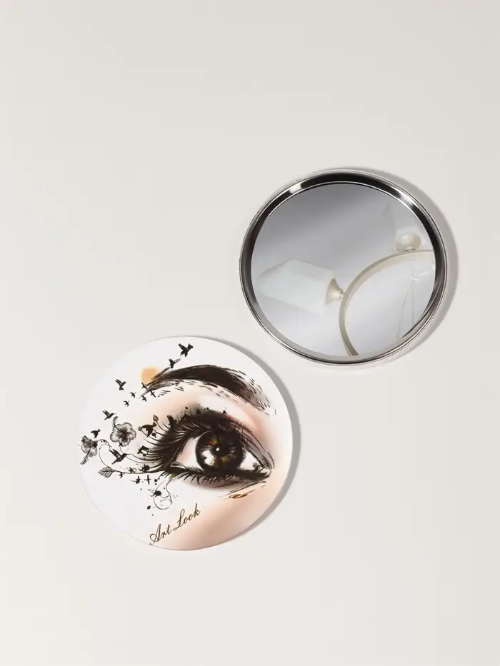 Зеркало компактное, не тяжелое, очень удобно для косметички и сумочки. Оно просто необходимо людям, использующим линзы на постоянной основе, чтобы при необходимости сразу устранить возникшую проблему. Карманный, дорожный вариант зеркала можно взять с собой в путешествие, поэтому вы сможете увидеть даже самые мелкие детали макияжа находясь в любой точке мира.