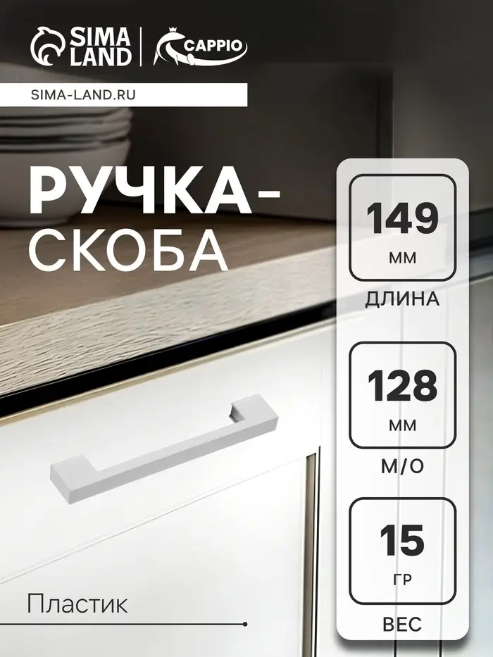 Ручка-скоба CAPPIO PK110, м/о 128 мм, пластик, цвет матовый хром