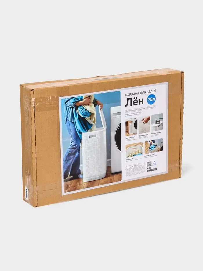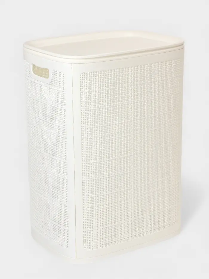 Плетёная корзина для белья с крышкой "Лён" 75л 43×32×60см, цвет белый
