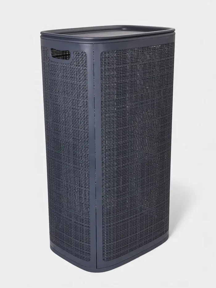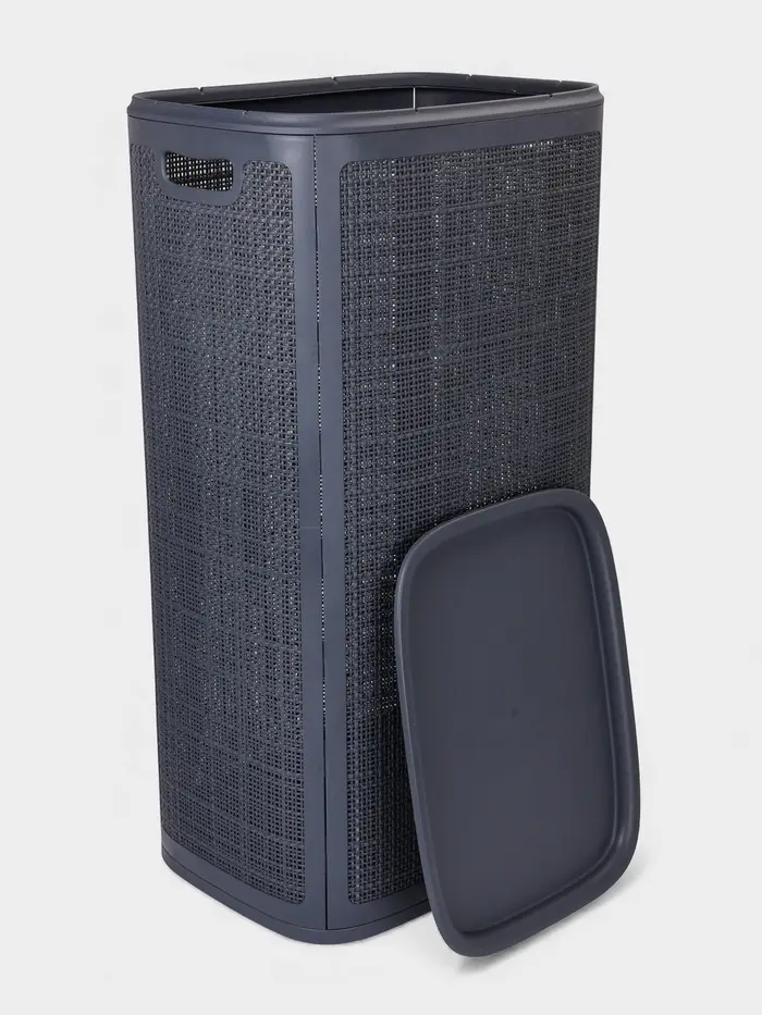 Плетёная корзина для белья с крышкой "Лён" 100л 43×32×80см, цвет графит