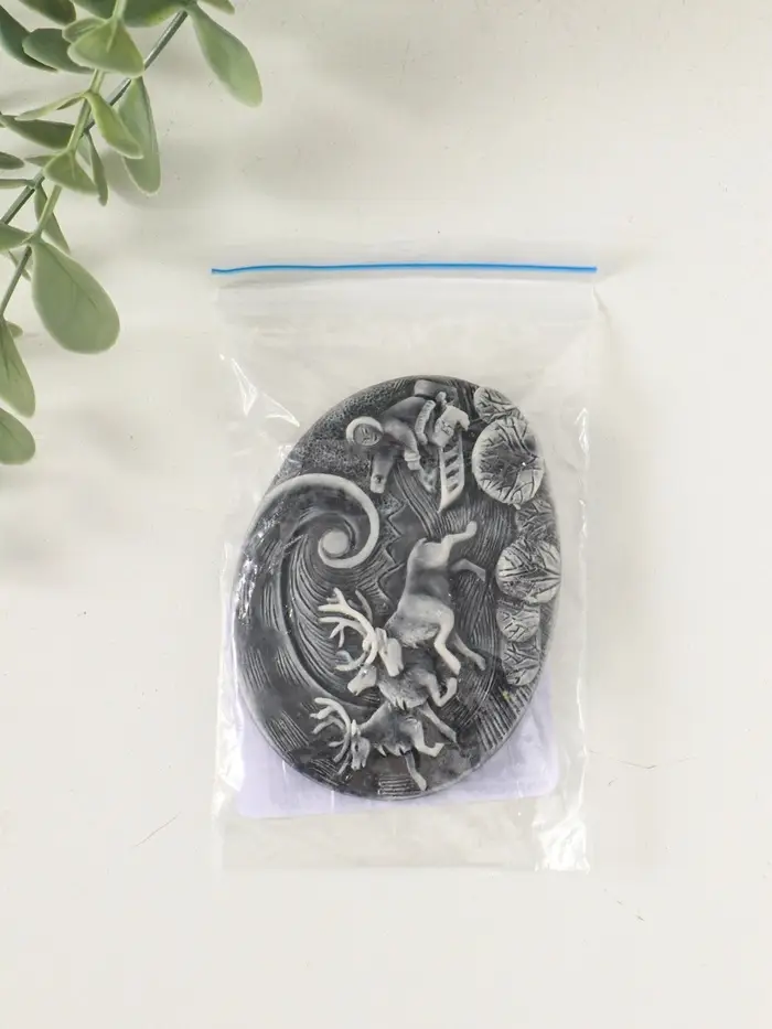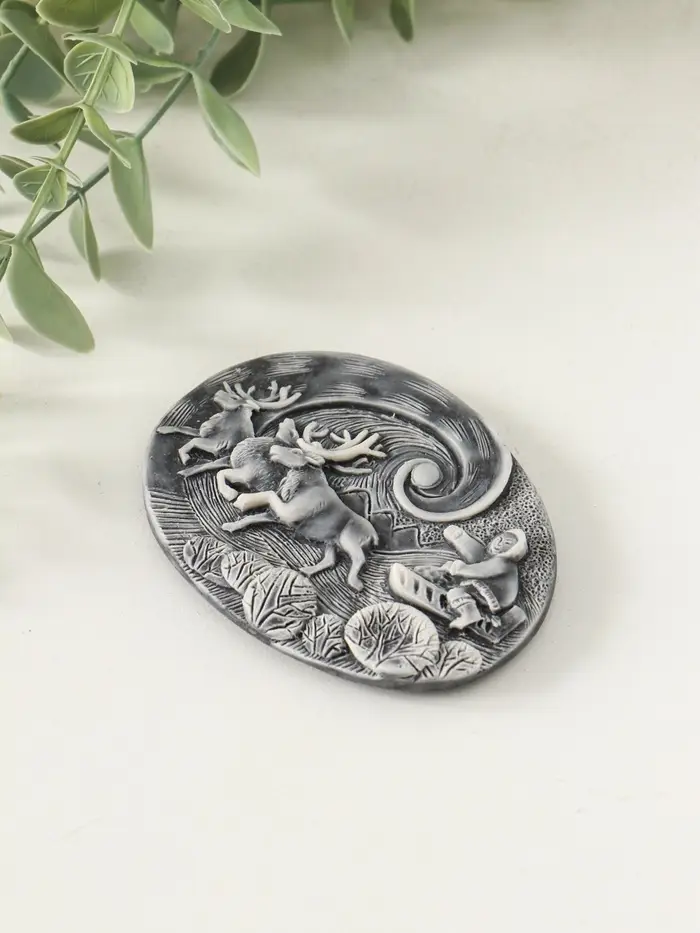 Магнит "Погонщик оленей на фоне северного сияния (барельеф)" 6 см