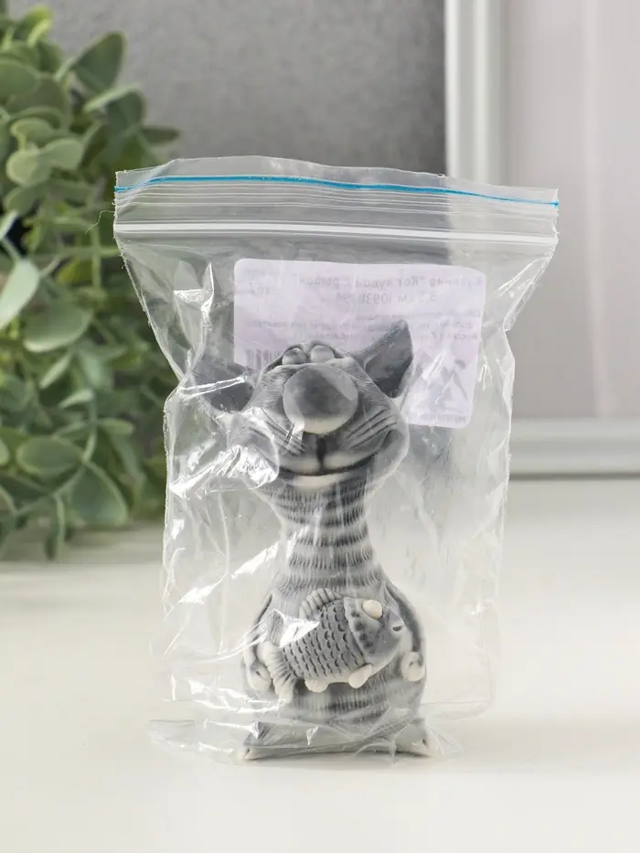 Сувенир "Кот худой с рыбой" 9,5 см