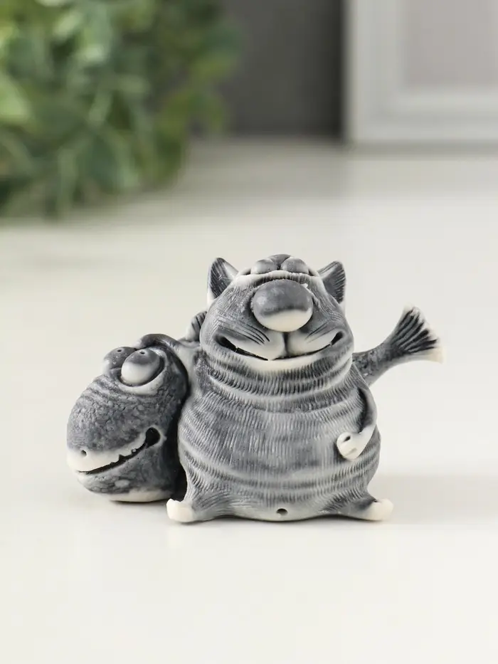 Сувенир "Кот с большой рыбиной" 4,8 см