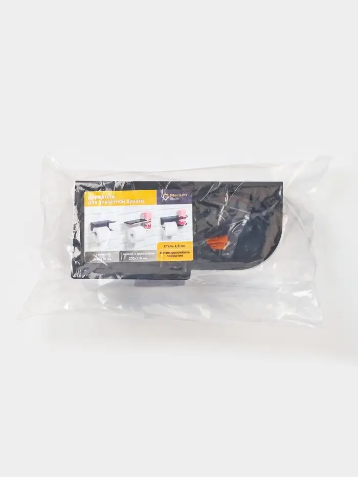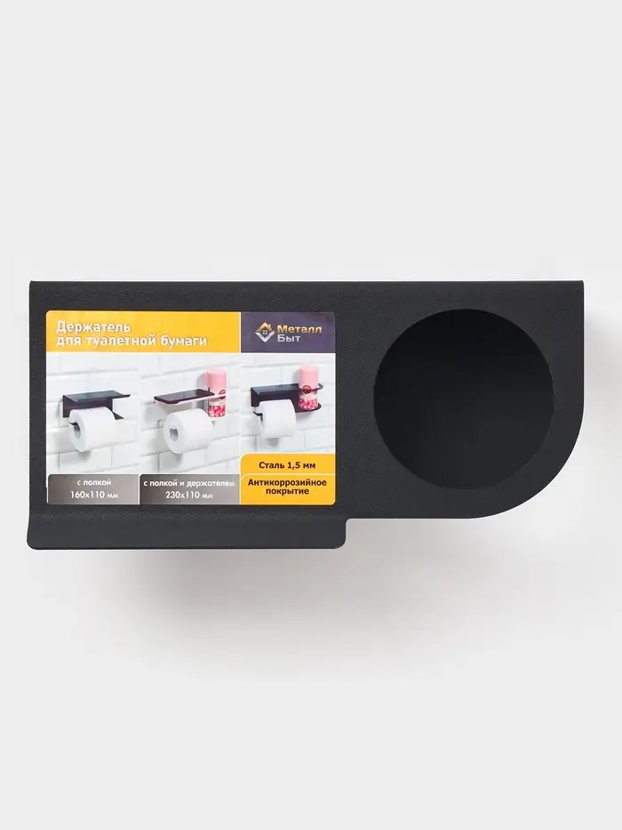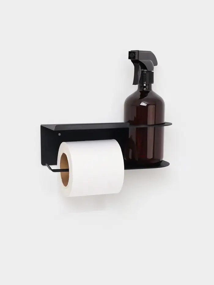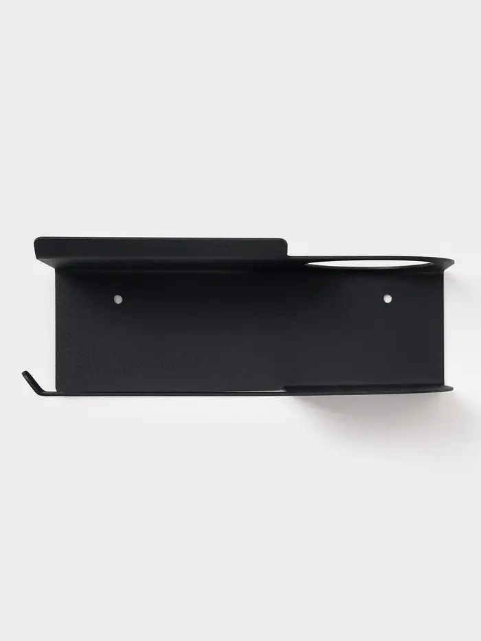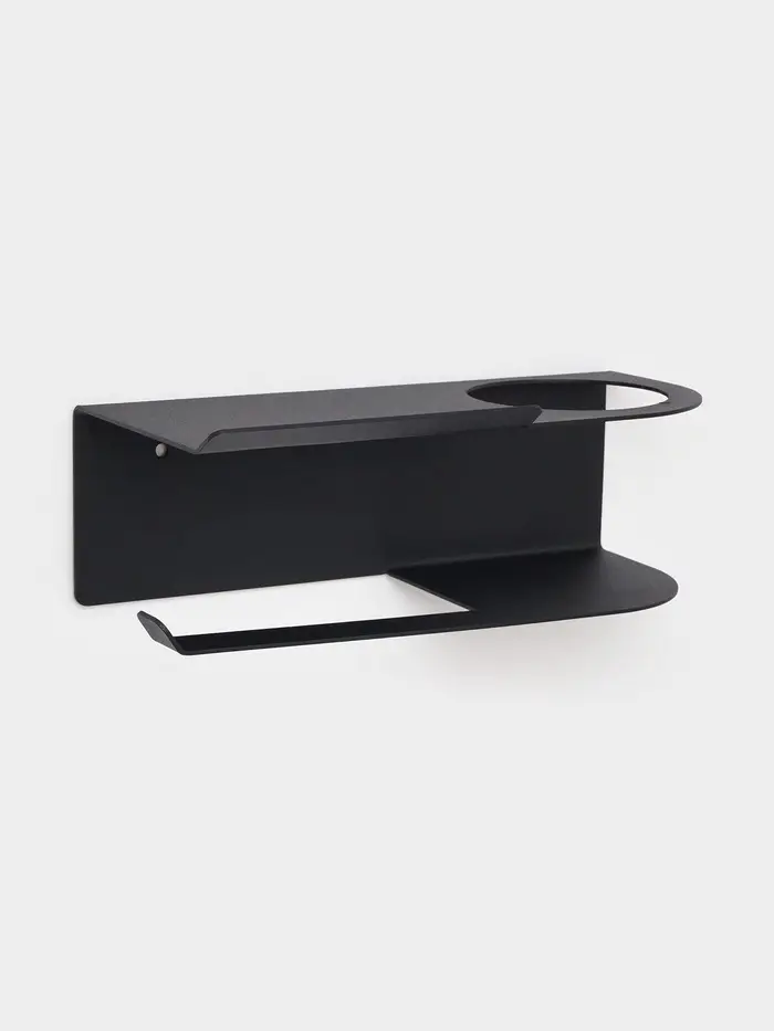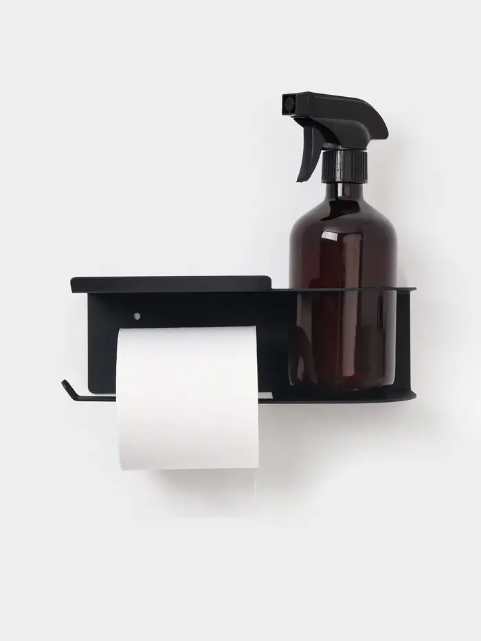 Держатель для туалетной бумаги с полочкой с отверстием для освежителя, цвет черный