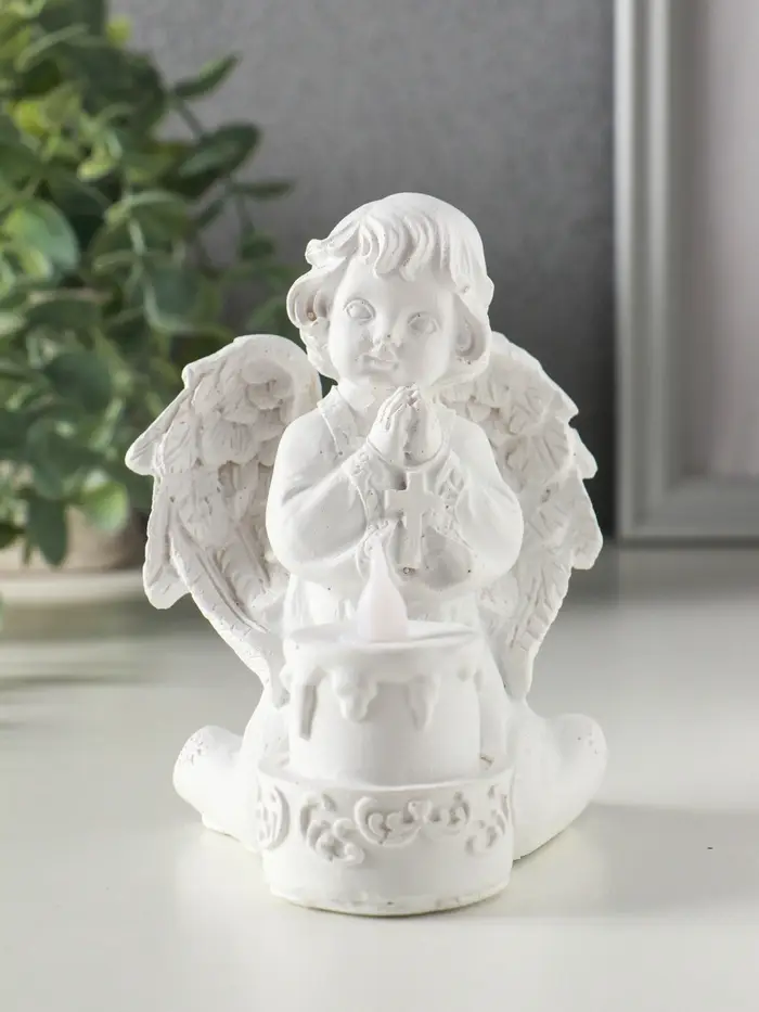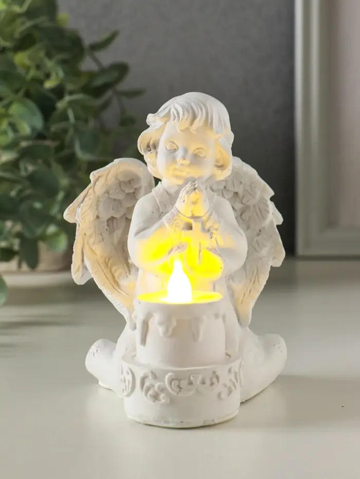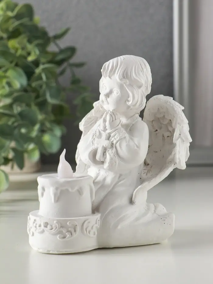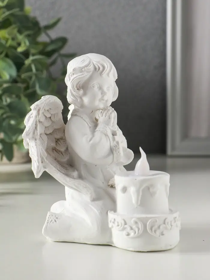Сувенир полистоун свет "Белоснежный ангел с двухъярусным тортом" 7,7х8,5х11,5 см