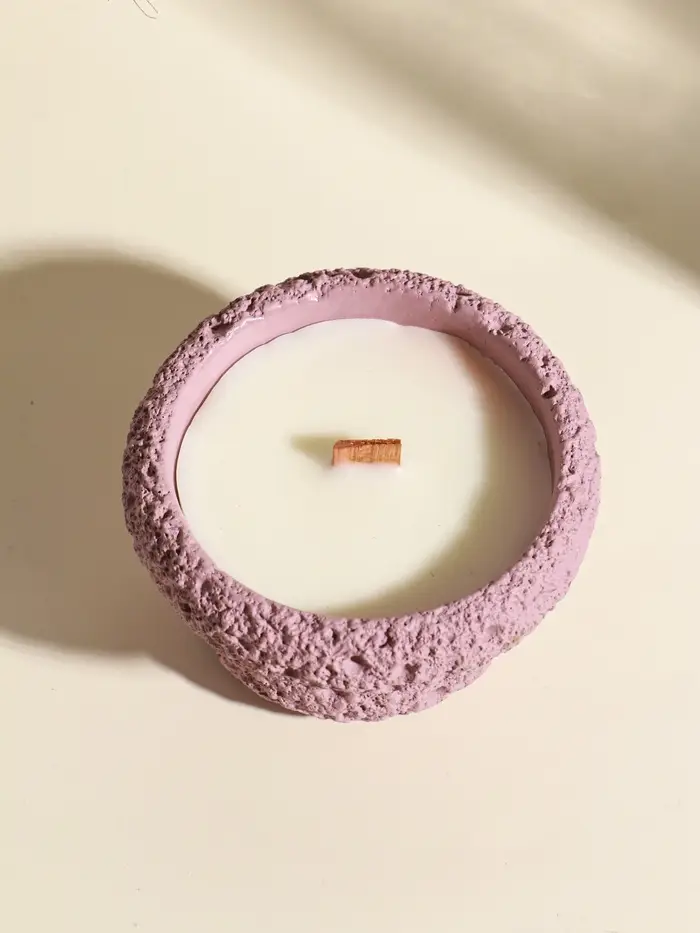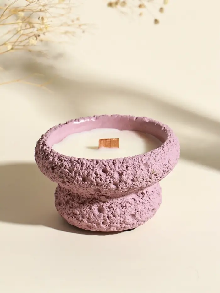 Свеча в вулканическом подсвечнике "Чаша" деревянный фитиль, розовая 9,3х9,3х5,5 см