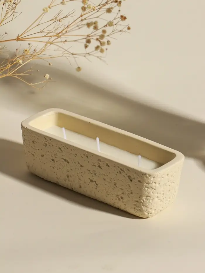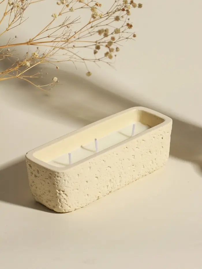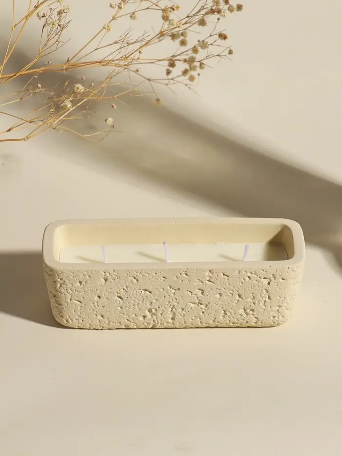 Свеча в вулканическом подсвечнике "Ящик" 3 хлопковых фитиля, белая 5,2х15х4,7 см